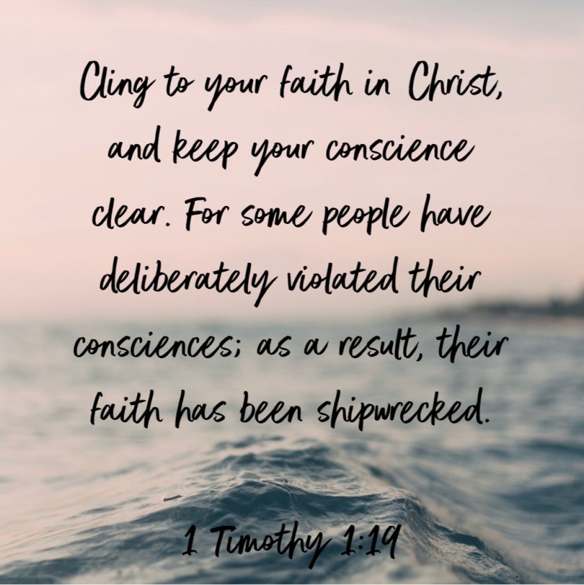 Faith is imperative. “Without faith it is impossible to please God”, “according to your faith it will be done”, etc.. We are purified (Acts 15:9) and sanctified (Acts 26:18) by faith. Romans 10:17 tells us that faith comes through hearing the message, or the word of Christ. However, it does not come all at once, rushing through us ant taking with it any and every doubt we’ve ever had. It takes continual building and acting upon (“Faith without works is dead”). We must hold on to it, like a life line, constantly check our actions and conscience against God’s word and make sure they line up. We cannot simply trust our conscience, believe that as long as it is clear then we are good, because our conscience can become seared (1 Timothy 4:2) and lose all sensitivity (Eph. 4:19). Our conscience must be both solidly grounded in the word and clear, our actions must work in accordance with the message that was given to us also. If we relax our grip on this grounding in the Word and begin to let the world sear our conscience bit by bit into believing anything goes so long as it makes you happy, then we will wreck our faith and our righteousness before God along with it (Romans 9:30 & Galatians 3:6).