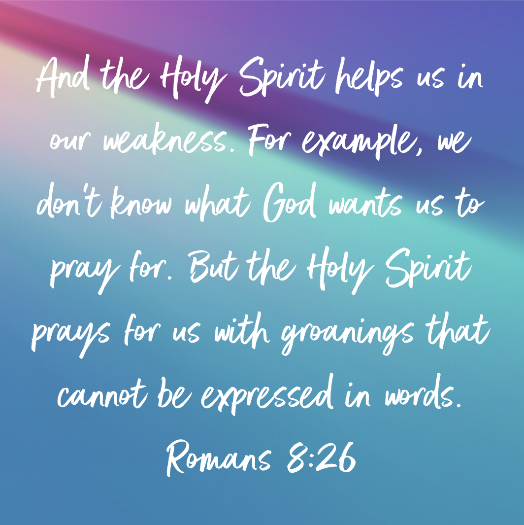 We must rely on the Spirit within us to overcome our weaknesses, our inability to do the things we want to do, know we should do, but can’t seem to. We need to allow the Spirit to be in control, be obedient to his promptings. Let God’s Spirit intercede for the things we don’t even know how to ask for. Only Christ can change who we are and the desires of our heart but change won’t come if we are not willing to obey.