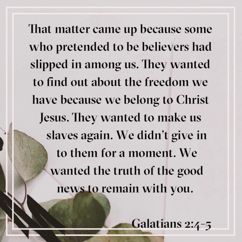 There will always be people, even within the relative safety of the church, who will try to lure us back into the bonds of legalism, of rule following for salvation. Christ has given us freedom with His mercy and grace. Our love for Him should drive our behavior, not a checklist of rules written by man to earn us favor with one another or with God. I don’t imagine, given His choice to give us free will that we may choose to love Him rather than be forced to serve Him, that He would give us any credit at all for following rules simply because we feel like we have to. But when our behavior begins to fall within the guidelines for living that God provided us in His word because we have chosen to love Him and to please Him, then I imagine he takes pride in us and in our actions. We can’t let rules make us unfeeling slaves, don’t give in to that lifestyle or to the people that preach it even for a minute. Don’t let them drag you back into bondage to legalism. Let the truth of the Gospel, your freedom in Christ, remain with you and guide your actions.