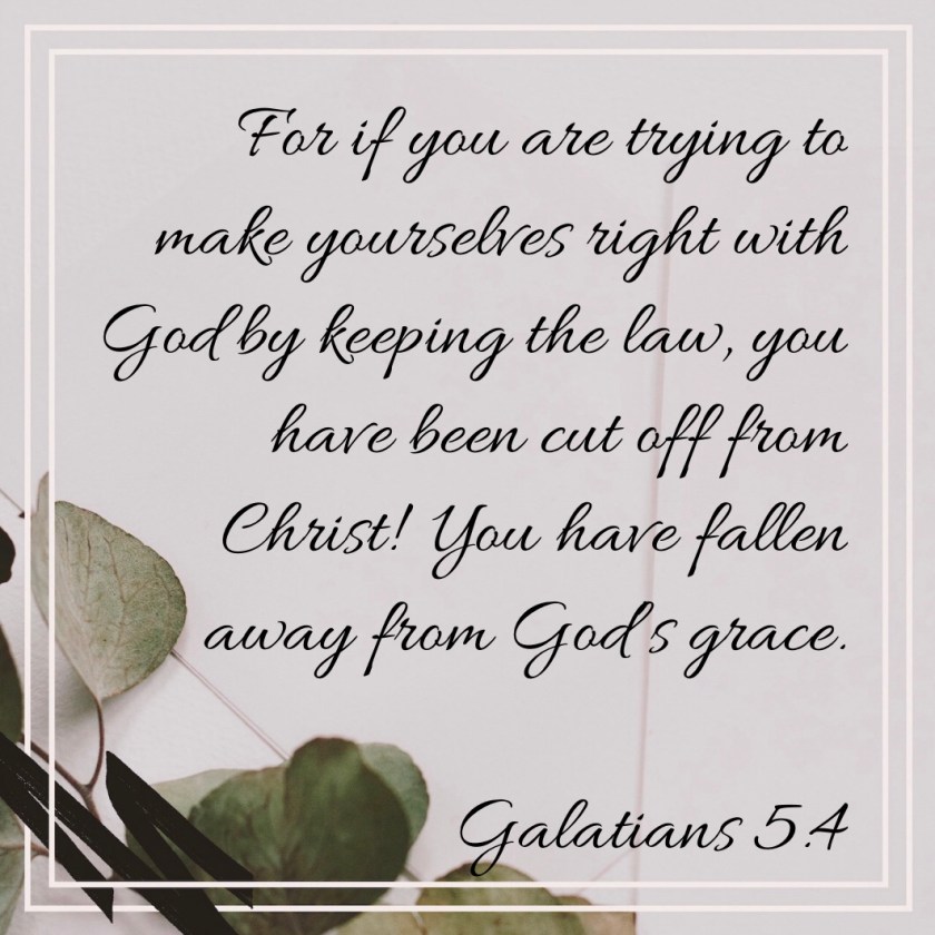 Legalism is something that every believer of every denomination struggles with to some extent. We’re supposed to do this, we’re not supposed to do that, and we often find ourselves condemning ourselves and others when we fail. These passages more or less point out that not failing is not an option when we place ourselves under the weight of the entire law. If we are not following each and every one of the six hundred & thirteen laws given in the Book of the Law then we are still cursed. “For it is by grace you have been saved through faith. And it is not anything you have done; it is the gift of God, not a result of works…” So us worrying about whether we, or others, are following this rule or that one is pointless. Our behavior, attitudes, and actions should flow naturally from our growing relationship with our Father and His Son. What we desire should morph over time into just wanting to please Him and that gives us freedom from the burden of rule following. So long as the freedom you find does not cause others to stumble in their own walk with God then you can walk in that freedom and be at peace rather than stressing over how you should act. *This is not a free pass to do whatever we want. It is important to know what God’s word says, know what He considers sinful and displeasing as well as what He considers good. Seek to know God and to please Him and you will stay on the right path!*